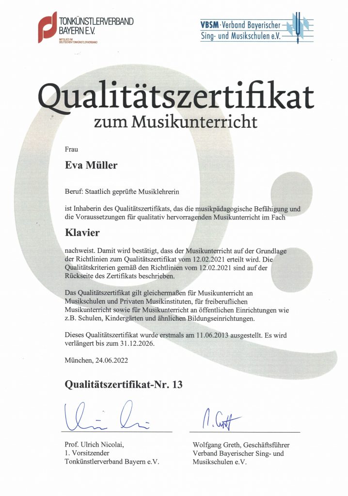 (Zertifikat Privater Musikunterricht)